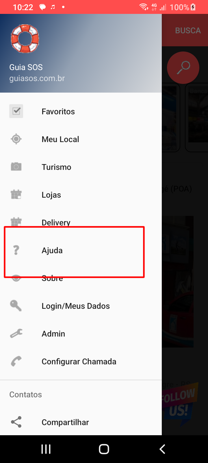 No aplicativo, abra o menu 'hamburguer' e acesse o ítem AJUDA